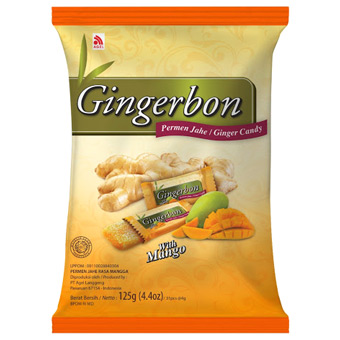 Ingredience: Cukr, tapiokový škrob, zázvor (10,4 %), hydrogenovaný kokosový olej, syntetické mangové aroma, extrakt z manga.