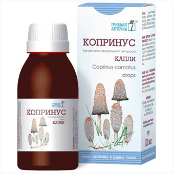 Tinktura s obsahem 7 % alkoholu. Kapky s extraktem z jedlé houby Coprinus comatus.