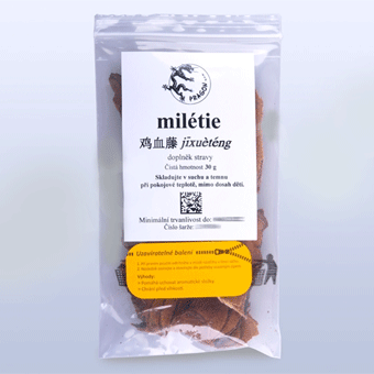 Balení obsahuje 30 g milétie, jixuetengu, Millettiae caulis.