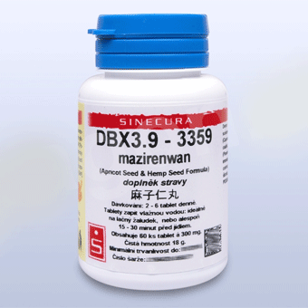 Složení: konopné semínko, reveň, meruňka, pivoňka, citroník, šácholán, pojiva: stearan hořečnatý, bramborový škrob