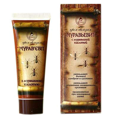 Účinné látky: kyselina mravenčí, extrakt z kostihojníku, extrakt z děhele, olej z pichtového lísku, vosk.