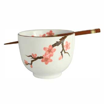 Porcelánová miska Soba Sakura, miska 13 cm + 1 pár jídelních hůlek