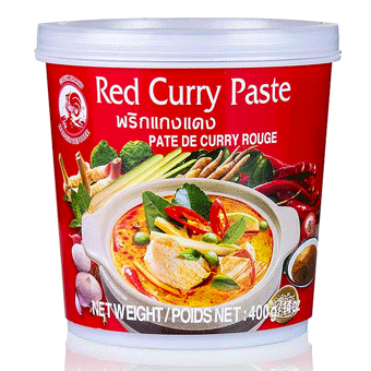 Thajská kari pasta červená / Thai red curry paste 400g vhodná pro tepelné zpracování, vhodná zejména do asijských a indických receptů.