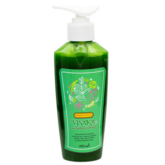 Visaka šampon je vyroben podle osvědčených ájurvédských receptur. Visaka šampón udržuje vlasy čisté, pevné, pružné a pomáhá odstraňovat lupy. Zabraňuje vypadávání, lámavosti vlasů a má příjemnou limetkovo-bylinnou vůni.