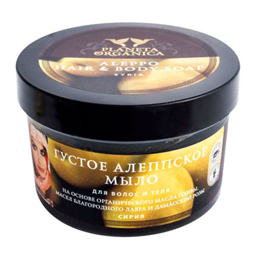 Husté mýdlo Allepo s organickým olivovým olejem, má vysoké hydratační a výživné vlastnosti, vyráběno podle starobylého receptu, nezměněného po několik staletí. Olivový olej obsahuje vysokou koncentrace kyseliny olejové, což přispívá k normalizaci metabolismu lipidů v kůži. Olej vavřínový je zdrojem vitaminů pro pokožku a slouží jako přírodní ochrana proti korozním prostředí. Vyživuje, uklidňuje, osvěžuje a čistí pokožku, působí jako antiseptikum. Organický šafrán olej dělá vlasy silnější a Růže Damašská dpdává mýdlu jemnmou, decentní, ale povznášející vůni.