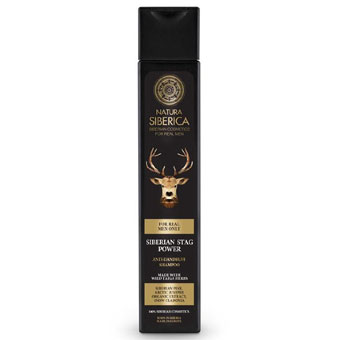 Šampon proti lupům „Síla sibiřského jelena“ je určený pro opravdové muže – silné, odvážné a sebevědomé!
