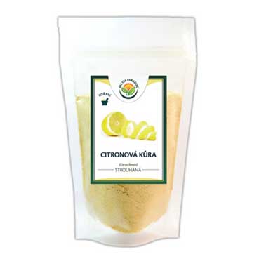 Použití: Citronovou kůru strouhanou přidáváme do sladkého pečiva, jako jsou vánočky, bochánky, buchty, dorty a moučníky. Výborně se hodí také na maso, do marinád či pomazánek.