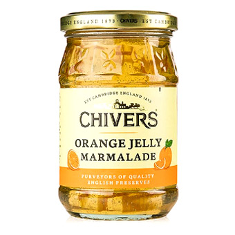 Originální CHIVERS Ginger - typická anglická marmeláda se zázvorem. Jméno Chivers je od roku 1873 po původní anglické značce "Jam" a "Jelly". Pro výrobu džemu byla prioritní sklizeň rodinných sadů, založených v roce 1805 poblíž Cambridge. Od roku 1885 byly během období bez úrody dovezeny španělské pomeranče ze Sevilly a byl tak vytvořen jeden z nejtypičtějších anglických produktů. Pomerančový džem s jemně nasekanou pomerančovou kůrou.