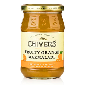 Originál Chivers Pomerančový džem s pomerančovou kůrou, osvěžující, ovocný. Jméno Chivers je od roku 1873 po původní anglické značce "jam" a "Jelly". Pro výrobu džemu byla prioritní sklizeň rodinných sadů, založených v roce 1805 poblíž Cambridge. Od roku 1885 byly během období bez úrody dovezeny španělské pomeranče ze Sevilly a byl tak vytvořen jeden z nejtypičtějších anglických produktů - pomerančový džem.
