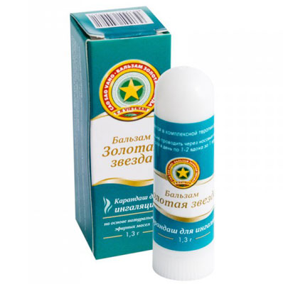 Zlatá hvězda balzám pro inhalaci. Chřipka, závratě, bolesti hlavy, nachlazení, rýma (jako symptomatické činidlo v komplexní terapie), bodnutí hmyzem.