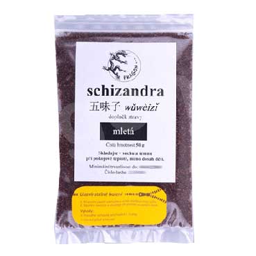 Balení obsahuje mleté, sušené plody schizandry čínské, Schisandrae fructus, wuweizi - 40 g.